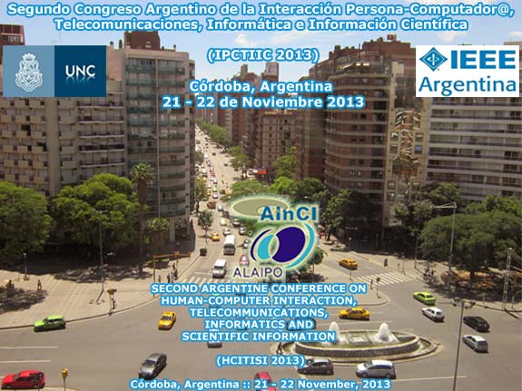 ALAIPO: Asociación Latina Interacción Persona-Ordenador –Latin Association of HCI (www.alaipo.com) and AINCI: Asociación Internacional de la Comunicación Interactiva –International Association of Interactive Communication (www.ainci.com). Email: info@alaipo.com :: info@ainci.com